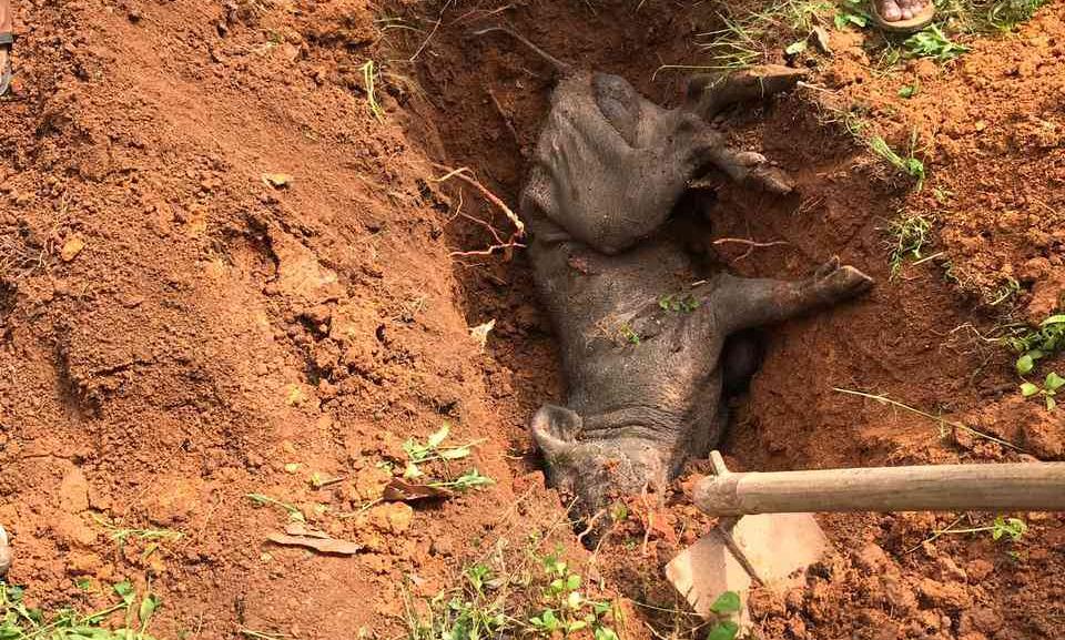 text_fieldsവെടിവച്ച് വീഴ്ത്തിയ കാട്ടുപന്നിയെ കുഴിച്ച് മൂടുന്നു