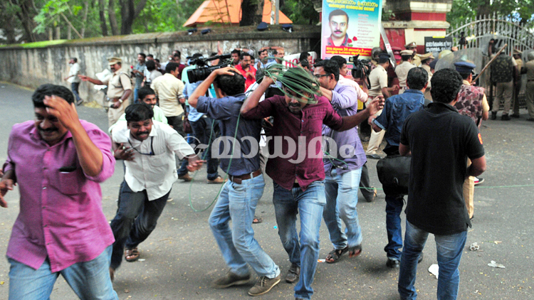അഭിഭാഷകരുടെ കല്ലേറിൽ ഒാടുന്ന മാധ്യമപ്രവർത്തകർ