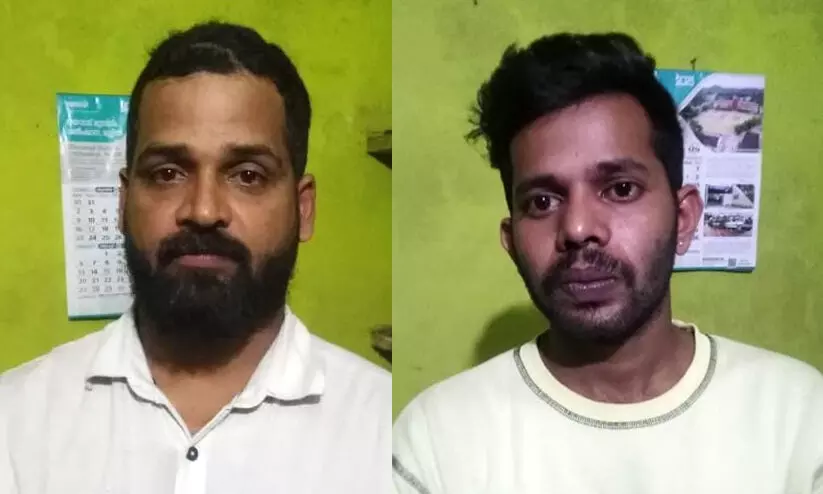 രഹസ്യ വിവരത്തിന്റെ അടിസ്ഥാനത്തിൽ ഇന്നലെ തീയതി രാത്രി പതിനൊന്നോടെ വാളാന്തോട് ഫോറസ്റ്റ് ചെക്ക് പോസ്റ്റിൽ നടത്തിയ വാഹന പരിശോധനയിലാണ് ഇവർ പിടിയിലാകുന്നത്. സീനിയർ സിവിൽ പൊലീസ് ഓഫീസർമാരായ ജിമ്മി, യൂനസ്, സിവിൽ പൊലീസ് ഓഫീസർമാരായ പ്രകാശൻ, സുബിൻ എന്നിവരും പൊലീസ് സംഘത്തിലുണ്ടായിരുന്നു.