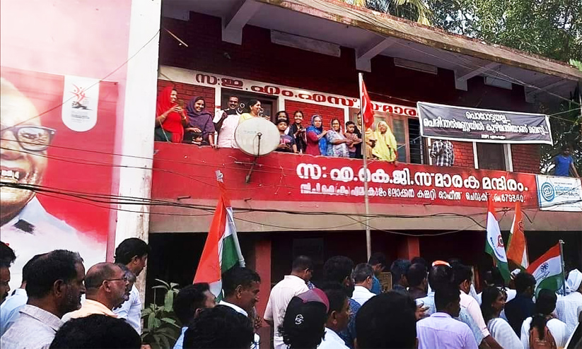 text_fieldsരാഹുൽ ഗാന്ധിയെ കാണാനെത്തിയ സ്ത്രീകൾ സി.പി.എം ലോക്കൽ കമ്മിറ്റി ഓഫിസിന് മുകളിൽ. സമീപത്ത് രാഹുലിനെ പരിഹസിക്കുന്ന ഡി.വൈ.എഫ്.ഐ ബാനറും കാണാം