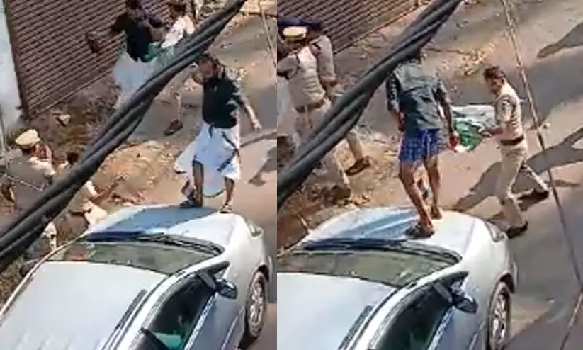 മന്ത്രിയുടെ കാറിന് മുകളിൽ ചാടിക്കയറി യൂത്ത് കോൺഗ്രസ് പ്രവർത്തകൻ; തുണിയുരിഞ്ഞ് പൊലീസ് VIDEO