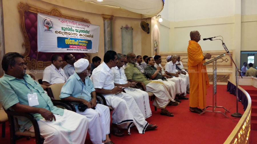 കൊടിഞ്ഞിയിൽ നടന്ന ഓണം^പെരുന്നാൾ സ്നേഹ സംഗമം തെയ്യാല ശാന്തിഗിരി ആശ്രമ മേധാവി സ്വാമി മധുശ്രീ ജ്ഞാനതപസ്വി ഉദ്ഘാടനം ചെയ്യുന്നു