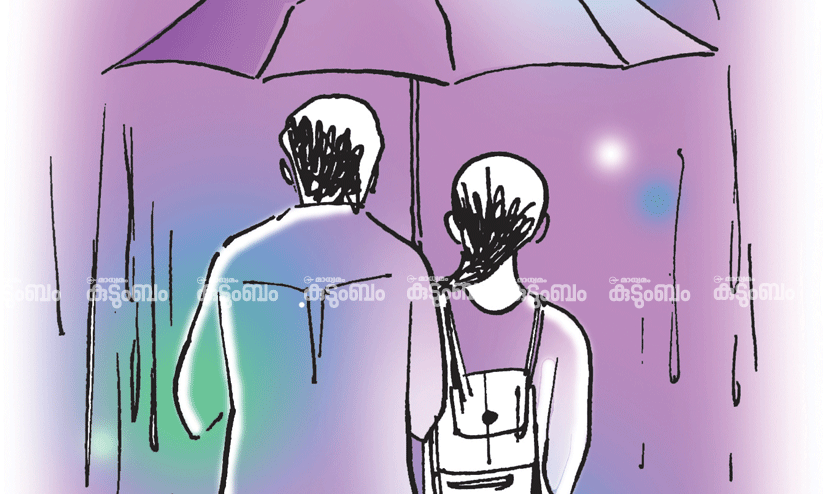 ‘‘ഉം’’ -ശബ്ദം കുറഞ്ഞ സമ്മതത്തോടെ അവൾ കുട നീട്ടി.