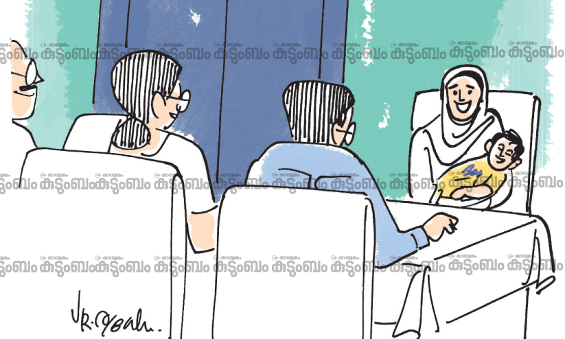 ‘‘നിന്റെ കുഞ്ഞാണോ കരയുന്നത്?’’ -അവരിലൊരാൾ ചോദിച്ചു. ‘‘ആണെങ്കിൽ ഇങ്ങോട്ടെടുത്തോണ്ട് വാ.’’ മനസ്സിൽ നിന്നൊരു ഭാരമിറങ്ങിയ പ്രതീതി. വേഗത്തിൽ ഇറങ്ങിപ്പോയി അച്ചുവിനെയുമെടുത്ത് തിരിച്ചുകയറി. ‘‘കസേരയിലിരുന്ന് അവനെ മടിയിൽ വെച്ചോ. അവനവിടെ സമാധാനത്തോടെ ഇരിക്കട്ടെ’’ -ആ നേരത്ത് എനിക്ക് കിട്ടിയ ആശ്വാസം പടച്ചതമ്പുരാനേ മനസ്സിലാവൂ.