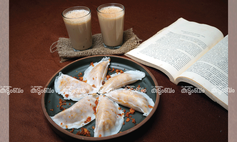 4. നേരത്തേ ചെറു ഉരുളകളാക്കിയ കൂട്ട് നേരിയതായി പരത്തി ഫില്ലിങ് വെച്ച് അടയുടെ രൂപത്തിലാക്കി ആവിയിൽ 10 മിനിറ്റ് വേവിച്ചെടുക്കാം.