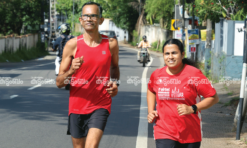 മാരത്തണുകളിലെ സ്ഥിര സാന്നിധ്യമായ 62കാരനായ നളിനാക്ഷനും 54കാരിയായ അജയയും പ്രായത്തെ ഓടിത്തോൽപിക്കുന്നു