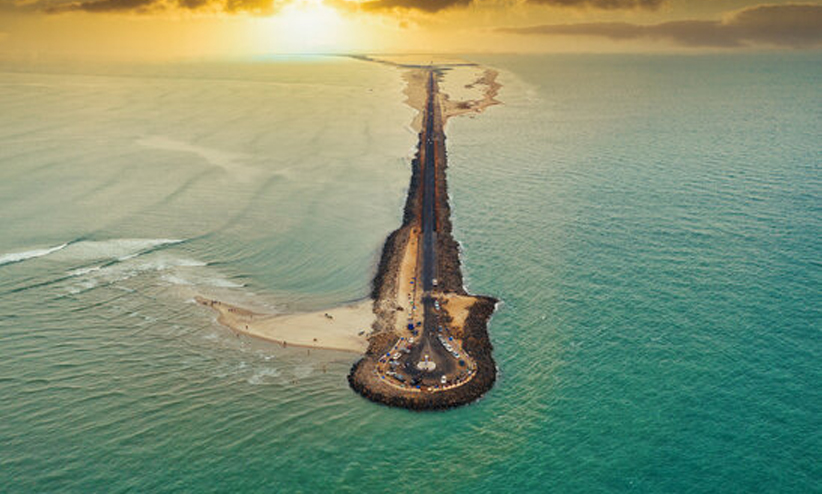 രാമസേതു അഥവാ ആഡംസ് ബ്രിഡ്ജ് എന്നറിയപ്പെടുന്ന പാലമാണ് ശ്രീലങ്കയെയും ഇന്ത്യയെയും തമ്മില് ബന്ധിപ്പിച്ചിരുന്നത്. ശ്രീലങ്കയിലെ മാന്നാര് ദ്വീപിനും ഇന്ത്യയിലെ രാമേശ്വരത്തിനും ഇടക്ക് നാടയുടെ ആകൃതിയില് ചുണ്ണാമ്പുകല്ലുകള് കൊണ്ടുള്ള ഉയര്ന്ന പ്രദേശമാണ് രാമസേതു. ഇന്ത്യന് ഉപഭൂഖണ്ഡത്തിനു പുറത്ത് ഈ പ്രദേശം ആഡംസ് ബ്രിഡ്ജ് എന്നാണ് അറിയപ്പെടുന്നത്. ധനുഷ്കോടിയുടെ മുനമ്പില് നിന്നും തുടങ്ങുന്ന, 30 കി.മീ. നീളമുള്ള ഈ പാലം ഇന്ന് നാശത്തിന്റെ വക്കിലാണ്.