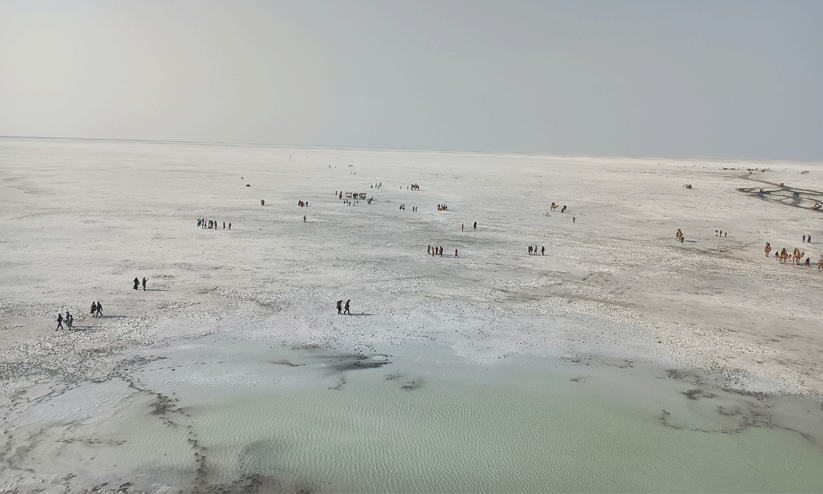 ഞങ്ങൾ ജീപ്പിൽനിന്നിറങ്ങി. ചുറ്റും നോക്കെത്താദൂരത്തോളം വെളുത്ത മരുഭൂമി. വെള്ളക്കടലാസിൽ ഒരു കറുത്ത വരയിട്ടതുപോലെ ഞങ്ങൾ കടന്നുവന്ന റോഡ് ദോർദോ സിറ്റിവരെ നീണ്ടുകിടക്കുന്നു. വാച്ച് ടവറിനു ചുറ്റും നിരവധി ഒട്ടകവണ്ടികളും സഞ്ചാരികളും. സഞ്ചാരികളിൽ ചിലർ ടവറിലേക്കു കയറുകയും ചിലർ ഒട്ടകവണ്ടിയിൽ കയറി ഉപ്പുമരുഭൂമിയിലേക്ക് നീങ്ങിക്കൊണ്ടിരിക്കുകയും ചെയ്യുന്നു. ചിലർ കാൽനടയായിതന്നെയാണ് ഉപ്പുമരുഭൂമിയിലേക്ക് നീങ്ങുന്നത്.