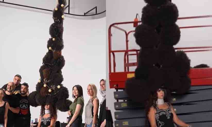 ക്രിസ്മസ് ട്രീ മാതൃകയിൽ ഏറ്റവും നീളമുള്ള ഹെയർസ്റ്റൈൽ ഒരുക്കി റെക്കോർഡിട്ട് സിറിയൻ സ്വദേശി -വിഡിയോ
