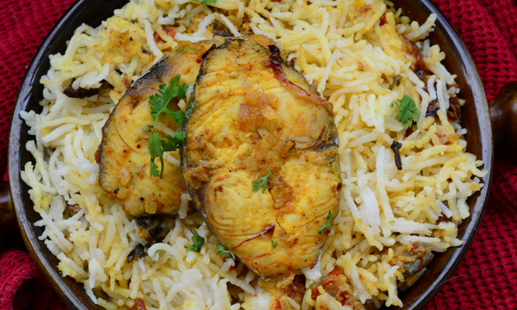 മീന് കഴുകി വൃത്തിയാക്കുക. കോഴിമുട്ട നന്നായി പതപ്പിച്ച് അതില് മുളകുപൊടിയും ഉപ്പും ചേര്ത്ത് നന്നായിളക്കി മീനില് പുരട്ടുക. അല്പം കഴിഞ്ഞ് മീന്കഷണങ്ങള് നന്നായി വറുത്തു കോരുക. ഒരു പാത്രത്തില് നെയ്യ് ചൂടാക്കി സവാള വറുത്തെടുക്കുക. ബാക്കിയുള്ള നെയ്യില് അണ്ടിപ്പരിപ്പും കിസ്മിസും വറുത്ത് കോരുക. കഴുകിയെടുത്ത അരി ഇതിലിട്ട് രണ്ടു മിനിറ്റ് നന്നായി ചൂടാക്കുക. ഒരു ലിറ്റര് തിളച്ച വെള്ളവും പാകത്തിന് ഉപ്പും അരിയില് ഒഴിച്ച് പാത്രം മൂടിവെച്ച് തീകുറച്ച് വേവിക്കുക. ഇടക്ക് നന്നായി ഇളക്കണം.മീന് വറുത്ത് ബാക്കിയുള്ള വെളിച്ചെണ്ണ ഫ്രൈ പാനില് ഒഴിച്ച് ചൂടാക്കുക. ഇതില് അരച്ചുവെച്ച വെളുത്തുള്ളി, ഇഞ്ചി, പെരുംജീരകം എന്നിവയും തക്കാളി, പച്ചമുളക് എന്നിവ അരിഞ്ഞതും ചേര്ത്ത് നന്നായി വഴറ്റുക. ഇതില് സവാള വറുത്തതിന്റെ പകുതിയും പാകത്തിന് ഉപ്പും ചേര്ക്കുക. മല്ലിയില, പുതിനയില എന്നിവ അരിഞ്ഞു ചേര്ക്കാം. ഗരംമസാല ചേര്ത്തിളക്കി ചെറുതീയില് അഞ്ചു മിനിറ്റ് ചൂടാക്കുക. ഇതില് മീന് കഷണങ്ങള് വറുത്തത് ചേര്ത്ത് മസാല പുരളുംവിധം ഇളക്കുക. മീന് പൊടിയാതെ നോക്കണം. ഇതിലേക്ക് വേവിച്ച അരി ചേര്ത്ത് നന്നായി യോജിപ്പിക്കുക. സവാള വറുത്തതും അണ്ടിപ്പരിപ്പും കിസ്മിസും ഉപയോഗിച്ച് അലങ്കരിച്ചശേഷം ചൂടോടെ വിളമ്പാം.