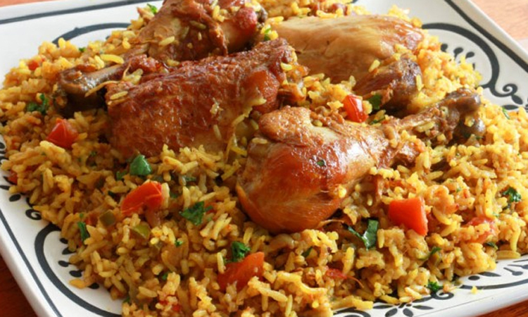 ചുവട് കട്ടിയുള്ള പാത്രത്തില് ആവശ്യത്തിന് എണ്ണ ഒഴിച്ച് സവാള വഴറ്റുക. ഇതിലേക്ക് ഇഞ്ചി ചേര്ക്കുക. സവാള ബ്രൗണ് നിറമാകുമ്പോള് ചിക്കന് ചേര്ക്കുക. ബ്രൗണ് നിറമാകുന്നതുവരെ വേവിക്കുക. ഇതിലേക്ക് ഓറഞ്ച് തൊലി പൊടിച്ചത്, കുരുമുളക് പൊടി, ഏലക്കാപൊടി, കറുവപ്പട്ട പൊടിച്ചത്, കറയാമ്പു പൊടിച്ചത്, തക്കാളി പ്യൂരി, തക്കാളി അരിഞ്ഞത്, ഉണങ്ങിയ നാരങ്ങ, ആവശ്യത്തിന് ഉപ്പ് എന്നിവ ചേര്ത്ത് നന്നായി യോജിപ്പിക്കുക. എണ്ണ തെളിഞ്ഞ് വരുമ്പോള് മൂന്ന് കപ്പ് വെള്ളം ചേര്ക്കുക. ചിക്കന് വേവുന്നതുവരെ പാത്രം അടച്ച് ചെറുചൂടില് 25 മിനിറ്റ് വേവിക്കുക. പാകമായ ചിക്കന് പാത്രത്തില് നിന്ന് മാറ്റി ചൂട് പോകാതെ സൂക്ഷിക്കുക. അതേ പാത്രത്തിലേക്ക് കുതിര്ത്തുവെച്ച അരിയും കാരറ്റും ചേര്ത്ത് മൂടിവെച്ച് ചെറുതീയില് 25 മിനിറ്റ് പാകം ചെയ്തെടുക്കാം. ഇതേസമയം മറ്റൊരു പാനില് അല്പ്പം എണ്ണ ഒഴിച്ച് ബദാമും ഉണക്കമുന്തിരിയും വറുത്തുകോരുക. പാകമായ ചോറിന് മുകളില് തയ്യാറാക്കിവെച്ച ചിക്കന് കഷണങ്ങള് നിരത്തിവെച്ച് ബദാമും ഉണക്കമുന്തിരിയും ചേര്ത്ത് അലങ്കരിച്ച് വിളമ്പാം.