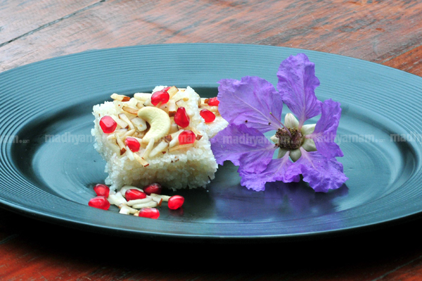 - ശേഷം തേങ്ങ, പഞ്ചസാര, ഏലക്കപ്പൊടി എന്നിവ യോജിപ്പിച്ച് 160 ഡിഗ്രി സെൽഷ്യസിൽ അഞ്ചു മിനിറ്റ് ബേക്ക് ചെയ്തെടുക്കാം.