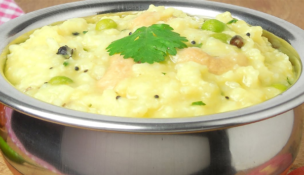 പാത്രത്തില് വെള്ളമൊഴിച്ചു നല്ലതുപോലെ തിളക്കുമ്പോള് അതില് ചതച്ച ഇഞ്ചി ചേര്ത്തതിന് ശേഷം അരിയും പരിപ്പും കഴുകി ഇടുക. നന്നായി കുഴയത്തക്കവിധം വേവിച്ച ശേഷം ഉപ്പും കുറച്ചു നെയ്യും ചേര്ത്തിളക്കി വാങ്ങിവെക്കുക. കുരുമുളകും ജീരകവും നെയ്യില് വറുത്തത് ചെറുതായി പൊടിച്ചിടുക. അണ്ടിപരിപ്പ് പിളര്ന്നതും ബാക്കി നെയ്യും അതില് ഒഴിച്ച ശേഷം നന്നായി ഇളക്കുക.