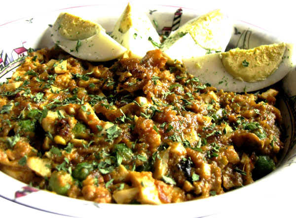 ആവശ്യത്തിനുള്ള എണ്ണ ചൂടാക്കി അതിലേക്ക് സവാള കുറച്ച് ഉപ്പു ചേര്ത്ത് നന്നായി വഴറ്റുക. ഇത് മൂത്ത ശേഷം ഇതിലേക്ക് ചെറുതായി അരിഞ്ഞ പച്ചമുളകും തക്കാളിയും ചേര്ക്കുക. അത് പാകമാകുമ്പോള് വെളുത്തുള്ളി, ഇഞ്ചി, കറിവേപ്പില, മല്ലിയില എന്നിവ ചേര്ത്തിളക്കി കുറച്ചുനേരം അടച്ചുവെച്ച് വേവിക്കുക. ഇതിലേക്ക് മുളകുപൊടി, മഞ്ഞള്പൊടി, മല്ലിപ്പൊടി, കുരുമുളകുപൊടി എന്നിവയിട്ട് മൂപ്പിക്കുക. ശേഷം ആവശ്യത്തിന് ഉപ്പും വെള്ളവും ചേര്ത്തിളക്കുക. കുഴമ്പ് രൂപത്തിലുള്ള ഇതിലേക്ക് ഗരം മസാലയും ചേര്ത്തിളക്കി ചെറുതായി നുറുക്കിയ മുട്ട ചേര്ക്കാം. ശേഷം ഇളക്കി അടച്ചുവെച്ച് രണ്ടു മിനിറ്റ് വേവിച്ച് ചെറുതായി അരിഞ്ഞ മല്ലിയില വിതറി വാങ്ങിവെക്കാം.