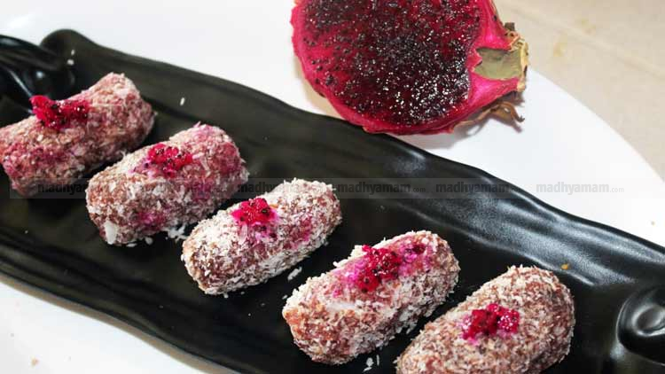 text_fieldsഈ അടുത്ത് നമ്മുടെ നാട്ടിൽ ഏറെ പ്രചാരം നേടിയെടുത്ത ഒരു വിദേശ ഇനം പഴമാണ് ഡ്രാഗൺ ഫ്രൂട്ട് (പിത്തായാ). പോക്ഷക മൂ ല്യം ധാരാളമായിട്ടുണ്ടെങ്കിലും ഇതിന് പ്രത്യേകിച്ചു ഒരു രുചിയില്ല. സാലഡ്, മിൽക്ക് ഷെയ്ക്ക്, സ്മൂത്തി എന്നിവ ആക ുമ്പോളാണ് ഡ്രാഗൺ ഫ്രൂട്ടിനു രുചി ഏറുന്നത്. ഡ്രാഗൺ ഫ്രൂട്ടും ഈന്തപ്പഴവും ചേർത്ത് ഒരു ഹെൽത്തി ബാർ ഉണ്ടാക്കുന്ന ത് എങ്ങനെ എന്ന് നോക്കാം...