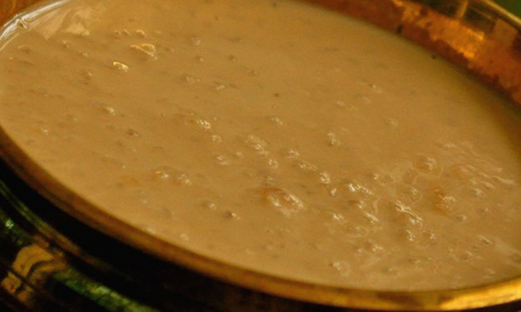 അരി നന്നായി കഴുകി വേവിക്കാൻ സ്റ്റൗവില് വെക്കുക. മറ്റൊരു പാത്രത്തില് വെള്ളം ഒഴിച്ച് ഉരുക്കിയെടുത്ത ശര്ക്കര അതിലേക്കു ചേര്ത്ത് നന്നായി ഇളക്കി തിളപ്പിക്കുക. അതിലേക്കു മൂന്നാം പാലും നന്നായി കുറുകിയതിനുശേഷം രണ്ടാം പാലും ഒഴിച്ച് നന്നായി ചൂടാക്കുക. ശേഷം ഒന്നാം പാൽ ചേര്ക്കുക. ശേഷം തീ അണക്കുക. അതിലേക്ക് പൊടിച്ച ചുക്ക്, ഏലക്ക എന്നിവ ചേര്ക്കുക. ഒരു പാനില് കുറച്ച് നെയ് ഒഴിച്ച് കശുവണ്ടിയും ഉണക്ക മുന്തിരിയും ചേര്ത്ത് വറുത്ത് കോരുക. തേങ്ങ ചെറു കഷണങ്ങളാക്കി ഇടാം. മില്ക്ക് മെയ്ഡ് ആവശ്യമെങ്കില് 50 ഗ്രാം ചേര്ക്കാം. ചെറു ചൂടോടെ ഉപയോഗിക്കാം.