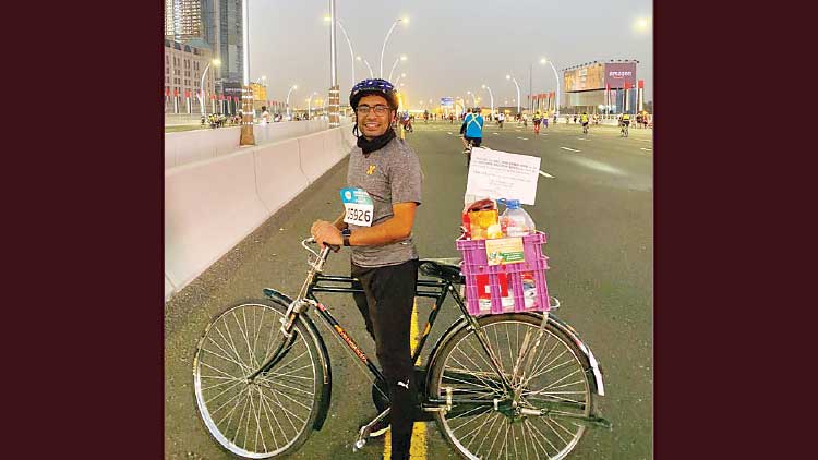 ''മഹാമാരിയുടെ കാലത്ത് അധികസേവനം ചെയ്ത ഗ്രോസറികളിലെ ഡെലിവറി ബോയ്സിന് ഈ ദുബൈ റൈഡ് സമർപ്പിക്കുന്നു. അറിയപ്പെടാതെ പോയ ഹീറോകൾക്ക് എെൻറ സല്യൂട്ട്...''കാസർകോട് സ്വദേശിയും മാരത്തൺ ഓട്ടക്കാരനുമായ അജ്മൽ പോയക്കര മെഹ്മൂദാണ് ഡെലിവറി ബോയ്സിന് നന്ദി അറിയിക്കാൻ അവരുടെ സൈക്കിളുമായി ദുബൈ റൈഡിനെത്തിയത്.