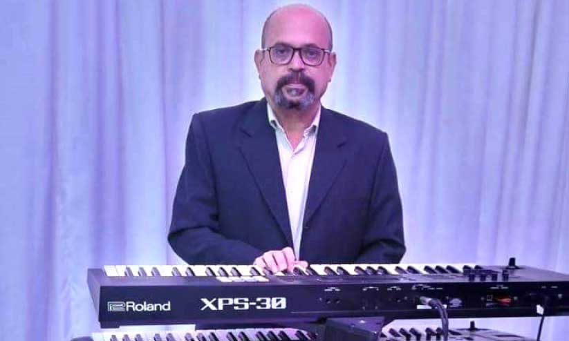 text_fieldsബഷീർ സംഗീത പരിപാടിയിൽ കീബോർഡ് വായിക്കുന്നു