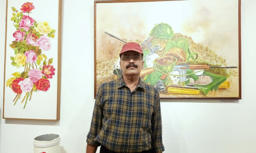 തൃശൂർ: ഒരു സൈനിക ഉദ്യോഗസ്ഥൻ ചിത്രം വരക്കുമ്പോൾ ഭാവനക്ക് സഞ്ചരിക്കാനേറെയാണ്. പച്ചപ്പ് നിറഞ്ഞ പ്രകൃതിദൃശ്യങ്ങളേക്കാളുപരി യുദ്ധഭൂമിയും ആയുധങ്ങളുമൊക്കെയാകുമെന്ന് ഉറപ്പ്. റിട്ട. ക്യാപ്റ്റൻ പി.കെ. ജയവർധനന്റെ 'ലാസ്റ്റ് െഫ്ലയിം-2 ' എന്ന 43 പെയിന്റിങുകളുടെ പ്രദർശനം കാണുമ്പോൾ പ്രതീക്ഷകൾ തെറ്റുന്നില്ല, എന്നാൽ ആ ഓയിൽ പെയിന്റിങുകൾ ഓരോന്നും അതിശയിപ്പിക്കുന്നുണ്ട്.