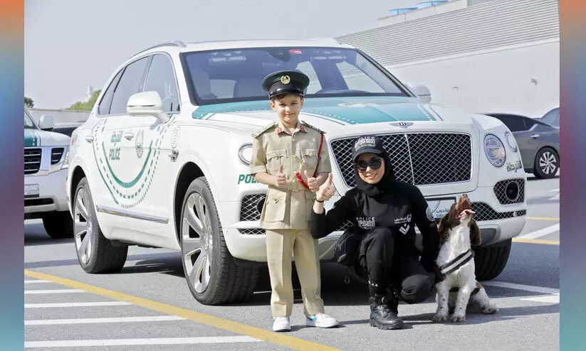 ദുബൈ: കുട്ടികൾക്ക് പൊലീസ് എന്നും എല്ലാ നാട്ടിലും വലിയ കൗതുകമാണ്. വലുതാകുമ്പോൾ പൊലീസാകണം എന്ന ആഗ്രഹം പ്രകടിപ്പിക്കുന്ന കുട്ടികൾ അതിനാൽതന്നെ ഏറെയാണ്. ഒരിക്കലെങ്കിലും പൊലീസിന്റെ ഒറ്റവർണ യൂനിഫോമും തൊപ്പിയും ധരിക്കാൻ ഏത് കുഞ്ഞുമനസ്സും കൊതിക്കും. ദുബൈ പൊലീസ് ഇത് തിരിച്ചറിഞ്ഞാണ് മൂന്നു വർഷം മുമ്പ് ‘കുട്ടികളുടെ ആഗ്രഹം സഫലമാക്കാം’ എന്ന തലക്കെട്ടിൽ പദ്ധതി ആരംഭിച്ചത്.