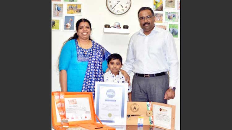 ദോഹ: ദിനോസറുകളുടെ വിസ്മയലോകത്തിലേക്ക് കൈപിടിച്ച കുരുന്നുപ്രതിഭക്ക് ഒടുവിൽ റെക്കോർഡുകളുടെ വിസ്മയനേട്ടം. ബിർള പബ്ലിക് സ്കൂളിലെ ഒന്നാം ക്ലാസ് വിദ്യാര്ഥി പത്മനാഭൻ നായരാണ് ആറാം വയസിൽ നാല് റെക്കോഡുകൾ സ്വന്തം പേരിൽ കുറിച്ചത്. വേള്ഡ് റെക്കോഡ്സ് ഓഫ് യു.കെ, ലിംക ബുക് ഓഫ് റെക്കോഡ്സ്, ഏഷ്യ ബുക്ക് ഓഫ് റെക്കോഡ്സ്, ഇന്ത്യ ബുക്സ് ഓഫ് റെക്കോഡ്സ് എന്നിവയിലാണ് ഈ കുരുന്നുപ്രതിഭ ഇടംനേടിയിരിക്കുന്നത്.