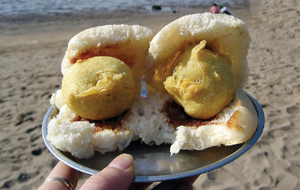 മുംബൈ നഗരത്തിന്റെ കൗതുകങ്ങളിലൊന്നാണ് വടാ പാവ്. ഒരുദിവസം നഗരത്തില് കഴിക്കപ്പെടുന്ന വടാ പാവ് എത്രയെന്ന് തിട്ടപ്പെടുത്താന് അക്കങ്ങളുടെ വലുപ്പത്തിനാകില്ല. കട് ലറ്റ് പോലെയുള്ള വട നെടുകെ ചീന്തിയ പാവിനകത്തു വെച്ചാണ് ലഭിക്കുക. ഉരുളക്കിഴങ്ങ് ചതച്ച് മല്ലിയിലയും പച്ചമുളകും ചേര്ത്ത് കുഴച്ച് മാവില് മുക്കി പൊരിച്ചെടുക്കുന്നതാണ് വട. വടക്കൊപ്പം പാവിനിടയില് പുതിനയും മല്ലിയിലയും ചേര്ത്തുണ്ടാക്കിയ എരിവുള്ള പച്ച ചട്നി ഒഴിക്കും. ഒപ്പം എണ്ണയില് മൂപ്പിച്ച വെളുത്തുള്ളിയും.