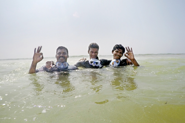 ഓക്സിജൻ സിലിണ്ടറിൽനിന്നും ശ്വസിക്കുമ്പോൾ നൈട്രജൻ അകത്തുചെല്ലും, ഇത് ബോധക്ഷയത്തിനു ഇടയാക്കിയേക്കും. അപ്പോൾ ബഡി ആണ് സഹായം ചെയ്യേണ്ടത്. മുങ്ങൽ നിയമം അനുസരിച്ചു കടലിനടിയിലേക്കുള്ള സഞ്ചാരത്തിന് ബഡി എന്ന് ഓമനപ്പേരുള്ള നീന്തൽ പങ്കാളി വേണം. ഓപൺ വാട്ടർ വിഭാഗത്തിലും അഡ്വാൻസ്ഡ് വിഭാഗത്തിലും പരിശീലനം പൂർത്തിയാക്കിയ ഇവരുടെ സംഘത്തിൽ തിരുവനന്തപുരത്തുനിന്നുള്ള പരമ്പരാഗത മുങ്ങലുകാരും സിറ്റിസൺ സയൻറിസ്റ്റുകളും ഉൾപ്പെട്ടിരുന്നു. ആശങ്കകൾ അനവധി ആയിരുന്നു. സചിന്റെ പപ്പ ഒഴികെയുള്ള ബന്ധുക്കളെല്ലാം ഈ തീരുമാനത്തെ എതിർത്തു. വേണ്ടാ മോനെയെന്നു പറഞ്ഞ് മുത്തശ്ശി കരഞ്ഞു. പിന്നീട് സചിന് വേണ്ട ഫീസിന്റെ ഒരുപങ്ക് തന്നത് ഇൗ മുത്തശ്ശിയാണ്. കടലാഴം കുറഞ്ഞ സ്ഥലങ്ങളിൽ ആയിരുന്നു ആദ്യഘട്ട പരിശീലനം. അവസാനഘട്ടത്തിൽ മര്യനാട് എന്ന പ്രദേശത്തെ ആഴംകൂടിയ കടലിൽ ഇറങ്ങി. കരയിൽനിന്നും രണ്ടു കി.മീറ്റർ ദൂരെ ചെന്നാണ് വെള്ളത്തിലേക്ക് ചാടിയത്. ആഴമുള്ള ഭാഗത്തു ചാടുമ്പോൾ സ്രാവ് കടിക്കുമോ എന്ന് ആശങ്ക ഉണ്ടായിരുന്നു -സചിനും കിരണും ഓർത്തു ചിരിച്ചു. പവിഴപ്പുറ്റുകൾ കാണാമെന്നും കരുതി. എന്നാൽ, തോണിയിൽനിന്നും ചാടി ആഴത്തിലേക്ക് ഊളിയിട്ട സംഘം കണ്ടത് അടിത്തട്ടിൽ കൂമ്പാരമായി കിടക്കുന്ന പ്ലാസ്റ്റിക് മാലിന്യങ്ങളാണ്. ഓഖി ചുഴലിക്കാറ്റിന് ശേഷമുള്ള ഒരു ദിവസമായിരുന്നു അവസാനഘട്ട പരിശീലനം. ഓഖി കടലിൽ നിക്ഷേപിച്ച മാലിന്യത്തിന്റെ അളവ് ഭീകരമാണ് എന്ന് ഇവരുടെ ഇൻസ്ട്രക്ടറും മറൈൻ ബയോളജിസ്റ്റും ഇന്ത്യയിലെ മത്സ്യത്തൊഴിലാളി സമൂഹത്തിലെ ആദ്യ വനിത സ്കൂബ ഡൈവറുമായ അനീഷ അനി ബെനഡിക്ട് സാക്ഷ്യപ്പെടുത്തുന്നു.