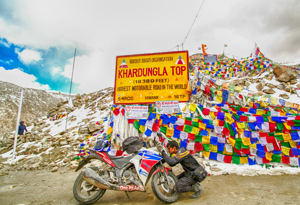 വണ്ടിയോടിച്ചു പോകാവുന്ന ലോകത്തിലെ ഏറ്റവും ഉയരംകൂടിയ പോയന്റായ 18,380 അടി ഉയരത്തിലുള്ള ലഡാക്കിലെ ഖര്ദുഗ്ല ടോപ്പില് എത്തിയപ്പോള് അഖില് ആദ്യം ചെയ്തത് ‘പിണങ്ങാതെ’ ഒപ്പം യാത്ര ചെയ്ത ബൈക്കിനെ ചുംബിക്കുകയായിരുന്നു. അമൃത്സര്, ജയ്പുര്, അഹ്മദാബാദ്, ഇന്ദോര്, ദാമന്-ദിയു, മുംബൈ, ഗോവ, ഹംപി, ബംഗളൂരു വഴിയായിരുന്നു മടക്കയാത്ര.