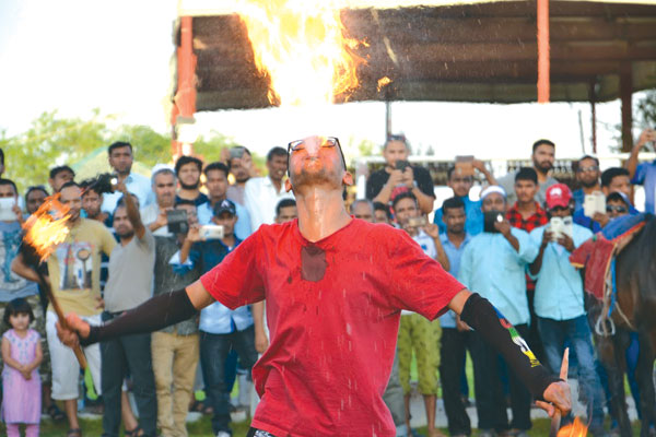 ആ പ്രകടനങ്ങള്ക്കു ശേഷം അവന് അവയെ തന്െറ വായക്കുള്ളിലാക്കി. നിമിഷങ്ങള്ക്കകം പുറത്തെടുത്തു. ഒരുകാലത്ത് നമ്മുടെ നാട്ടിന്പ്പുറങ്ങളില് കാണുന്നതും ഇപ്പോള് കാണാനില്ലാത്തതുമായ പ്രകടനങ്ങളായിരുന്നു അവയെല്ലാം. മൈതാനത്ത് കൂടി നില്ക്കുന്ന വിവിധ രാജ്യക്കാര് കൈയടിച്ചു കൊണ്ടിരുന്നു. ഡീസല് വായിലേക്കെടുത്ത ശേഷം തീപ്പന്തത്തിലേക്ക് തുപ്പി ആകാശ ഗോളങ്ങളെ സൃഷ്ടിക്കുന്ന കാഴ്ചയും. എല്ലാം കഴിഞ്ഞശേഷം കരീം തന്െറ പാമ്പുകളെയും കുരങ്ങിനെയുമെടുത്ത് എങ്ങോട്ടോ പോയി. അപ്പോള് പാര്ക്കില്നിന്നും അനൗണ്സ്മെന്റ് മുഴങ്ങി. ‘കരീമിന്െറ പ്രകടനം ഇനി നാളെ കൂടി മാത്രം. നാളെ വൈകീട്ട് മൂന്നുമണിക്ക്. വരുവിന് ആസ്വദിക്കുവിന്’.