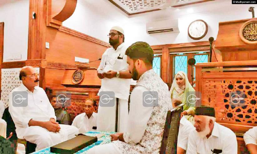 പള്ളിക്കുള്ളിലെ നിക്കാഹ് വേദിയിൽ വധുവും