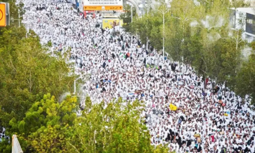 text_fieldsഅറഫയിലെ ആര്യവേപ്പ് മരങ്ങൾ തണൽവിരിക്കുന്ന വഴികളിലെ തീർഥാടകരുടെ പ്രവാഹം