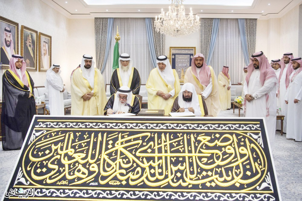 ശേഷം ഇരുഹറം കാര്യാലയ മേധാവി ഡോ. അബ്ദുറഹ്മാൻ അൽസുദൈസും കഅ്ബയുടെ പരിചാരകൻ ഡോ. സ്വാലിഹ് ബിൻ സൈനുൽ ആബിദീൻ അൽസുബൈത്തിയും കൈമാറ്റ രേഖയിൽ ഒപ്പുവെച്ചു. മിനയിലെ ഗവർണറേറ്റ് ആസ്ഥാനത്ത് നടന്ന ചടങ്ങിൽ മക്ക ഡെപ്യൂട്ടി ഗവർണർ അമീർ ബദ്ർ ബിൻ സുൽത്താൻ, ഇരുഹറം കാര്യാലയ മേധാവി ഡോ. അബ്ദുറഹ്മാൻ അൽസുദൈസ് എന്നിവർ സംബന്ധിച്ചു.
