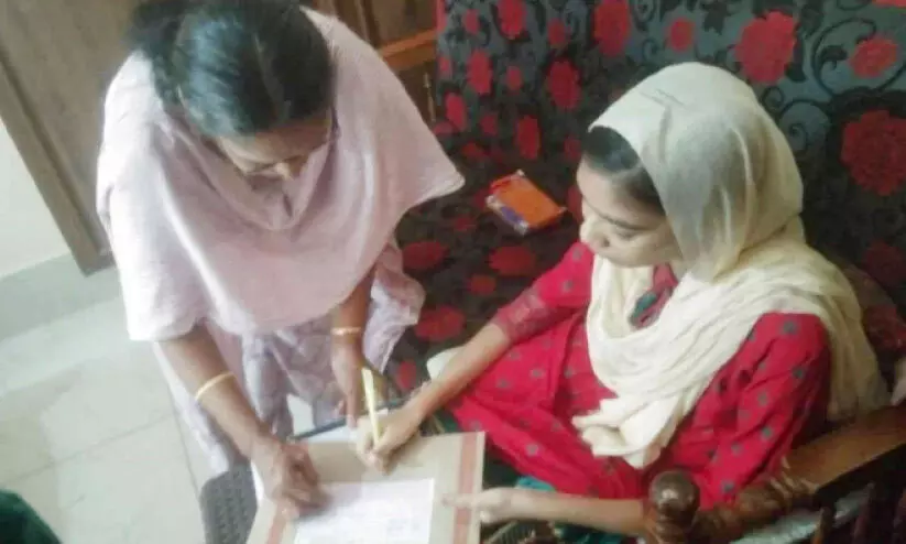 സന്തോഷത്തോടെ അനീഷ സ്വന്തം വീട്ടിൽ പരീക്ഷ എഴുതി