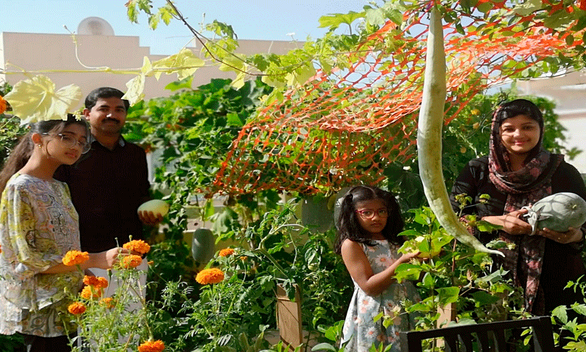 12 വര്ഷത്തോളമായി മുസഫ മുഹമ്മദ് ബിന് സായിദ് സിറ്റിയിലാണ് കുടുംബം വസിക്കുന്നത്. നേരത്തെ, താമസിച്ചിരുന്ന വില്ലയിലെ ഉള്ള സൗകര്യത്തില് പച്ചക്കറികളും ഫലവര്ഗങ്ങളും കൃഷി ചെയ്തിരുന്നു. എന്നാല്, ആശിച്ചപോലെ വിശാലമായ ടെറസോടുകൂടി താമസയിടം ലഭിച്ചത് അടുത്തിടെയാണ്. ഇതോടെ കൂടുതല് സ്ഥലങ്ങളിലേക്ക് കൃഷി വ്യാപിപ്പിക്കാന് സാധിച്ചു.
