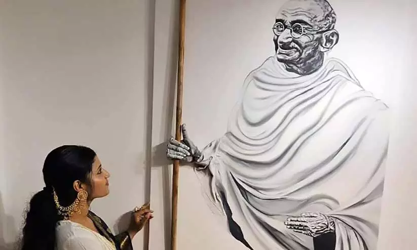 വരച്ച മഹാത്മാ ഗാന്ധിയുടെ ചിത്രം