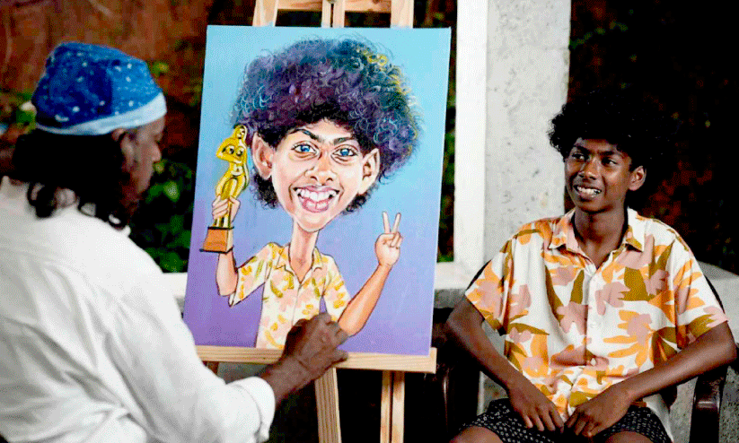 ‘പല്ലൊട്ടി’ സിനിമയിലെ അഭിനയത്തിന് മികച്ച ബാലതാരത്തിനുള്ള അവാര്ഡിന് അര്ഹനായ ഡാവിഞ്ചിയുടെ വെള്ളാങ്കല്ലൂരിലെ വീട്ടിൽ സുഹൃത്തുക്കളോടൊപ്പം എത്തി ലൈവായാണ് ഡാവിഞ്ചി സുരേഷ് ചിത്രം വരച്ചത്. ഡാവിഞ്ചിയെ ചെറുപ്രായം മുതല് ബന്ധുക്കൾ മുഖേന ഡാവിഞ്ചി സുരേഷിന് അറിയാം.