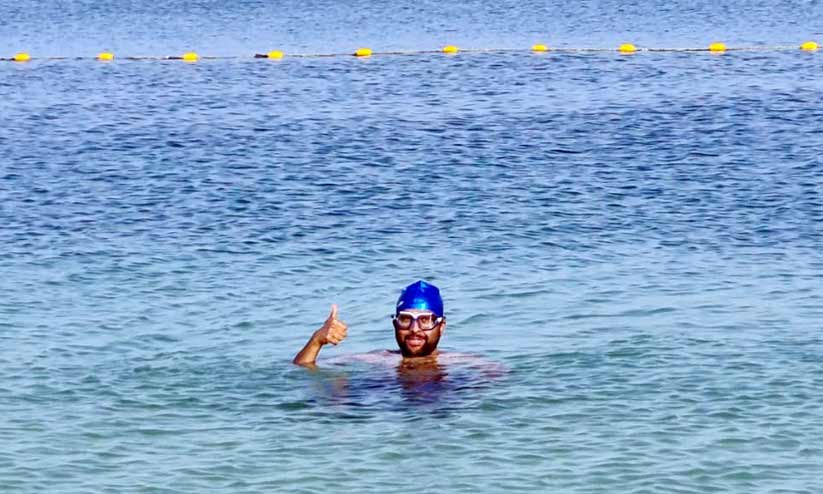മംസാറിൽ നീരാടി സമീഖ്; നിർത്താതെ നീന്തിയത് 25 കിലോമീറ്റർ