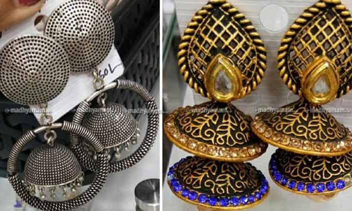 ബ്ലാക്ക് മെറ്റൽ, വൈറ്റ് മെറ്റൽ, ഗോൾഡൻ മെറ്റൽ, കോപ്പർ അലോയ് കോട്ടിങ്, ഓക്സിഡൈസ്ഡ് മെറ്റീരിയലുകളിൽ ഈ കമ്മലുകൾ ലഭ്യമാണ്. പരിച പോലെ കാതിൽ കിടക്കുന്നവയും ബ്ലാക്ക്, ഗോൾഡൻ മെറ്റീരിയലും ചേരുന്ന സ്റ്റഡുകളിൽ തൂങ്ങിക്കിടക്കുന്ന കല്ലുവെച്ച വലിയ കമ്മലിനാണ് ആരാധകരേറെ... അതേ സ്റ്റൈലിൽ ആന്റിക് ഡിസൈനിൽ ഗോൾഡൻ മെറ്റലിലും ലഭിക്കും. 425 രൂപ മുതലാണ് ഇവയുടെ വില തുടങ്ങുന്നത്.