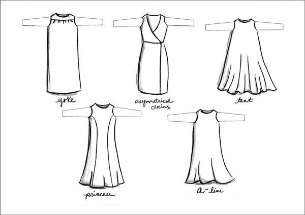 ബാൻഡ്യൂ, ശീത്ത്, ബ്ലൗസൺ, ട്യൂനിക്, പെൻസിൽ, എസ്സിമെട്രിക്, ബോഡീകോൺ , മാക്സി, മിഡി, കഫ്താൻ, െസ്വറ്റർ, കേപ്, ബേബിഡോൾ, എ-ലൈൻ, യോക്ക് സ്റ്റൈൽ, പിനഫോർ, ഡെനിം, ലേസ്ഡ് അപ്, സ്പഗറ്റി തുടങ്ങി 41 ഇനം േഫ്രാക്കുകളാണ് ദേശഭേദമില്ലാതെ ആളുകൾ അണിയുന്നത്.