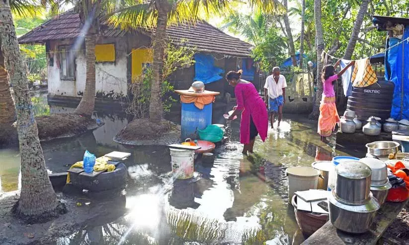 ‘‘മുട്ടറ്റം വെള്ളത്തില്നിന്ന് കഞ്ഞീം കറീം വെക്കാന് ഞങ്ങള് ശീലിച്ചു. എന്നാല്, വീട്ടില് അത്യാഹിതം സംഭവിച്ചാല് ആളെ ആശുപത്രിയിലെത്തിക്കാന് എന്തുചെയ്യും?’’ -വെളിയത്താംപറമ്പ് പതിമൂന്നാം വാര്ഡില് പാണ്ടികശാലക്കല് വീട്ടില് നീന ജീവിതം പറഞ്ഞുതുടങ്ങുന്നത് ഇങ്ങനെ. ഓരോ തവണയും മരണം, മറ്റ് അടിയന്തര ആവശ്യങ്ങള് ഉണ്ടാകുമ്പോള് കടപ്പുറത്തുനിന്ന് വാഹനങ്ങളില് മണ്ണെത്തിച്ച് നിരത്തിയാണ് ചടങ്ങുകള് നടത്താറ്.