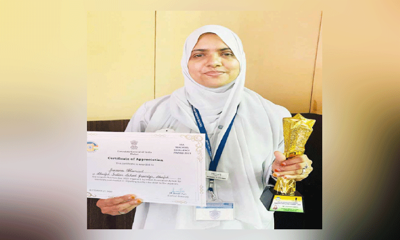 ദുബൈ: അധ്യാപക ദിനത്തോടനുബന്ധിച്ച് യു.എ.ഇയിലെ സി.ബി.എസ്.സി അധ്യാപകരിൽനിന്ന് പാഠ്യ/പാഠ്യേതര രംഗത്ത് ഏറ്റവും മികവ് പുലർത്തുന്ന അധ്യാപകർക്ക് കോൺസുലേറ്റ് ജനറൽ ഓഫ് ഇന്ത്യയും ഇന്ത്യൻ അസോസിയേഷൻ അജ്മാനും സംയുക്തമായി നൽകുന്ന അവാർഡിന് ജസീന കൊളക്കാടൻ അർഹയായി.