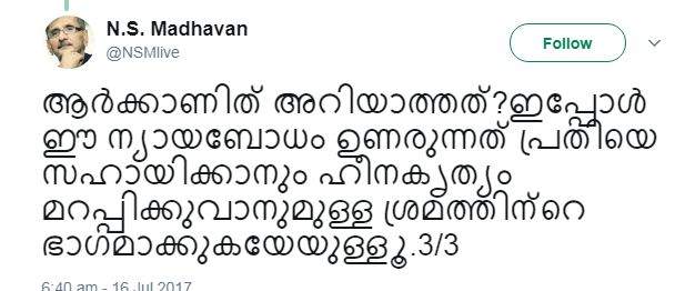 ഈ ന്യായബോധം ദിലീപിനെ സഹായിക്കാൻ- എൻ.എസ് മാധവൻ