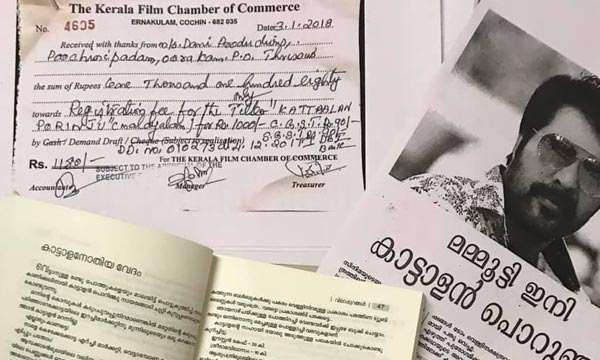 (‘കാട്ടാളൻ പൊറിഞ്ചു’ തിരക്കഥയുടെ 21-09 -2017 മുതൽ 29-4-2018 വരെ അയച്ചുകൊടുത്ത പത്തോളം ഇ-മെയിലുകൾ, കൈയെഴുത്തു പ്രതികൾ, ഡി.ടി.പി ചെയ്ത ഹാർഡ് കോപ്പികൾ തെളിവിനായി എവിടേയും ഹാജരാക്കാൻ തയാറാണ്.)