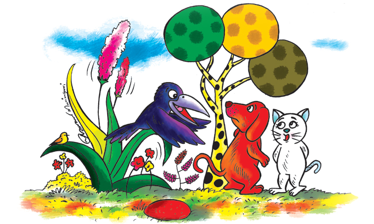 കശ്മലയുടെ കാര്യം പരുങ്ങലിയായി. പപ്പി ഒന്നും പറയുന്നില്ല. പക്ഷേ, പല്ലിളിച്ചാണ് നില്പ്. മുരളുന്നുമുണ്ട്. എന്തും ചെയ്യും? പപ്പി പാത്രത്തില് ബാക്കിയിടുന്ന ചോറൊക്കെ കൊത്തിത്തിന്ന് വൃത്തിയാക്കുന്നത് കശ്മലയാണ്. എന്നും വയറുനിറച്ചു പപ്പി തരുന്നതുമാണ്. പൂച്ചയെ വിശ്വസിക്കാന് വയ്യ. പിറകിലൂടെ ശബ്ദമില്ലാതെ വന്നു ചാടിപ്പിടിക്കാന് ബഹുകേമിയാണ്. ഒടുവില്, കാക്ക തൊണ്ട ശരിയാക്കി ഇങ്ങനെ പറഞ്ഞു: ‘കൂട്ടരെ, ഈ ഭംഗി, ഭംഗീന്നു പറയുന്നതിലൊന്നും വലിയ അര്ഥമില്ല. ശരിക്കുള്ള സൗന്ദര്യം വാലിട്ടെഴുതിയ കണ്ണിലോ വീണുകിടക്കുന്ന ചെവിയിലോ ഒന്നുമല്ല...’