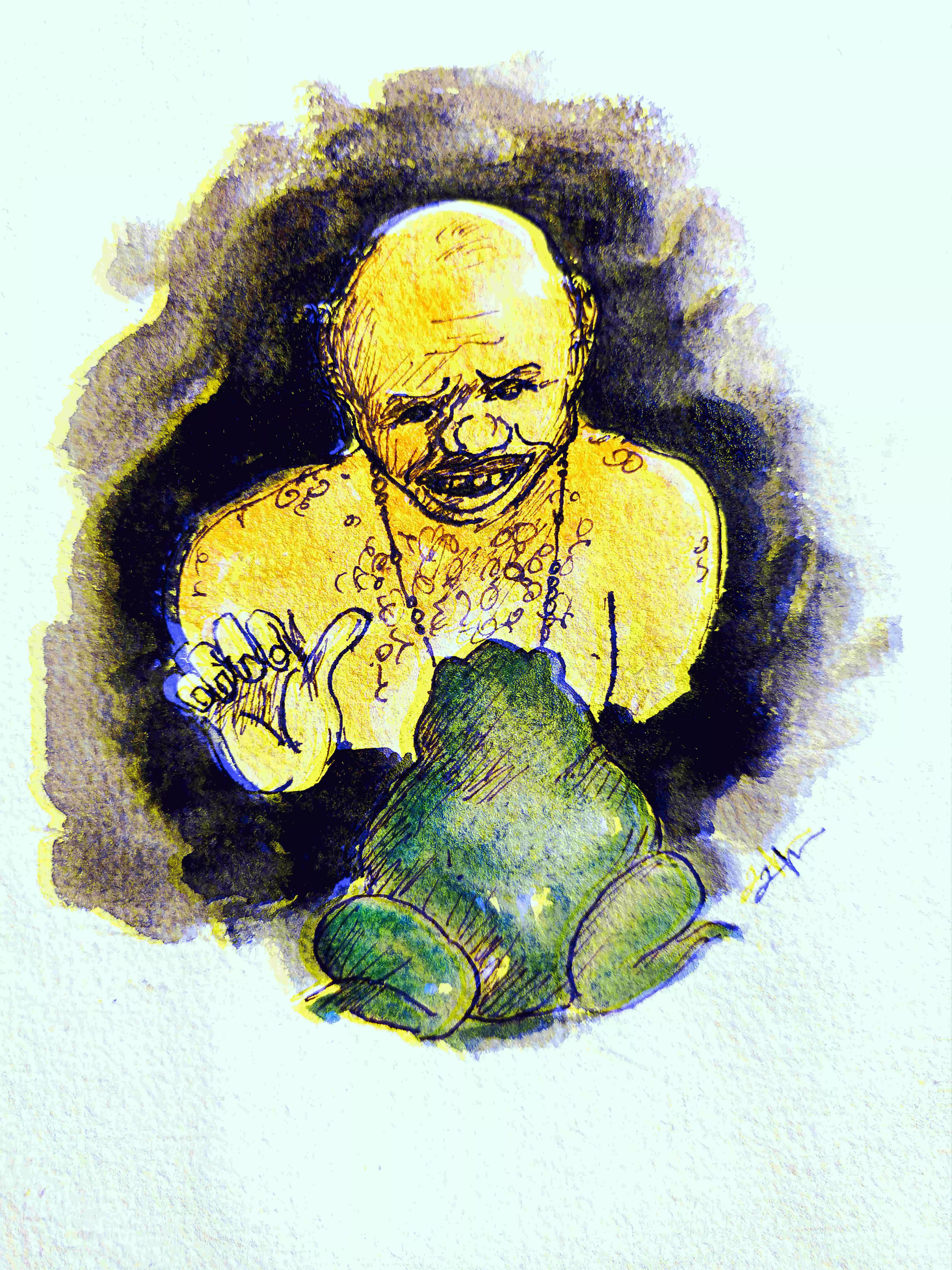 മഞ്ഞപ്പല്ലുകള് പുറത്തുകാട്ടി പിശാചു ബാധിച്ചവനെപോലെ അയാള് കുലുങ്ങി ചിരിച്ചു.