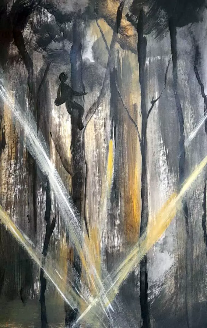 അടുത്തുകണ്ട പടുകൂറ്റന് മരത്തില് അവന് വലിഞ്ഞുകയറി. കാടിന്റെ ആകാശക്കാഴ്ച അവന് മുന്നില് തെളിഞ്ഞു. തന്നെ വളഞ്ഞ് മുന്നേറുന്ന ഓരോ വേട്ടക്കാരെയും അവന് മനസ്സിലെ അദൃശ്യ ഭൂപടത്തില് അടയാളപ്പെടുത്തി. പുറത്തേക്കുള്ള വഴി മനസ്സില് കുറിച്ചു. മരത്തില്നിന്നിറങ്ങി, ലക്ഷ്യമിട്ട ദിശയിലേക്ക് പാഞ്ഞു. കട്ടപിടിച്ച ഇരുട്ടില് ഒരു മരത്തില് ഇടിച്ച് അവന് നിലത്തുവീണു. നെറ്റിയില് ചോരപൊടിഞ്ഞു. പിടഞ്ഞെഴുന്നേറ്റ് വീണ്ടും ഓടി.