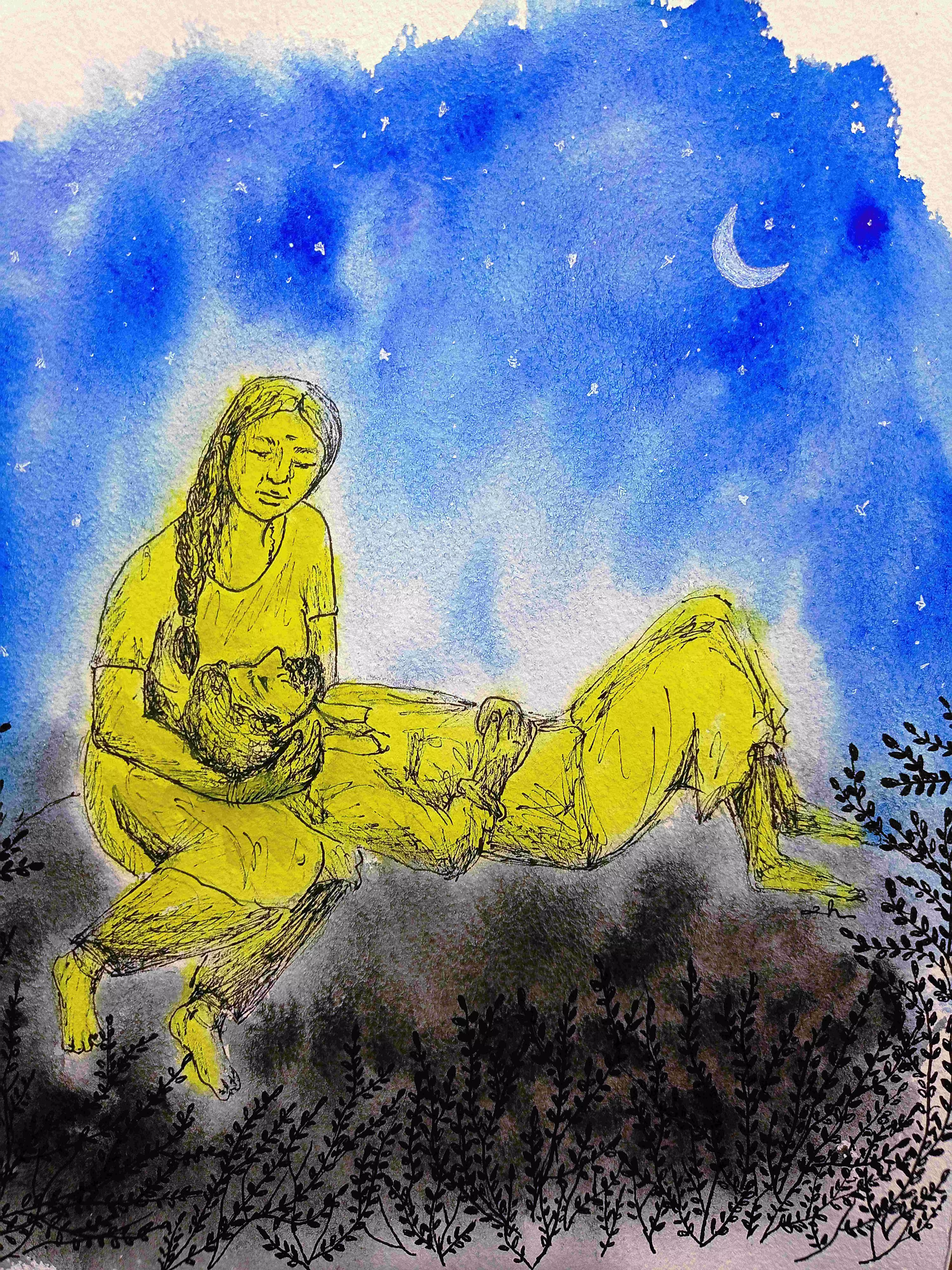 കുഞ്ഞിമാളുവിന്റെ കരച്ചില് കേള്ക്കാന് യോഗം ഇല്യാതെ കെട്ടിന്റെ മൂന്നാം മാസം ആരാലോ കൊത്തിനുറുക്കപ്പെട്ട് ശിവന് ഇടവഴിച്ചാലില് രക്തത്തില് കുളിച്ചു കിടന്നു. ശവത്തിനടുത്ത് ചുണ്ടില് നേര്ത്ത ചിരിയുമായിരുന്ന കുഞ്ഞിമാളുവിനെ കണ്ട് ആരും മൂക്കത്ത് വിരല് വെച്ചില്ല. എന്നാല്, ശിവന് മരിച്ച് ഒരുമാസം കഴിയും മുമ്പെ കുഞ്ഞിമാളു തൂങ്ങിമരിച്ചപ്പൊ മൂക്കത്ത് വിരല്വെക്കാത്തവരായി ആരുമില്ലായിരുന്നു. വിശ്വേട്ടന് വരെ പറഞ്ഞുപോയി, ‘‘ന്നാ പിന്നെ ഓള്ക്ക് ശിവന് പറഞ്ഞ ചേല്ക്ക് ഒന്ന് നെലോളിച്ച് കൊട്ത്തിട്ട് ഓന്റൊപ്പം സുഖായി ജീവിച്ചൂടായിരുന്നോന്നും... ഹല്ല. പിന്നെ.’’