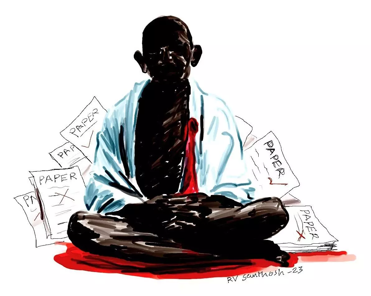 മുസഫര് അലി ഒരുള്വിളി കേട്ടു: ‘‘ഏതുനേരവും നഷ്ടപ്പെടാന് സാധ്യതയുള്ള വിലപ്പെട്ട മുദ്രകളാണ് താങ്കളുടെ കൈകളിലുള്ളത്. എത്രയും പെട്ടെന്ന് സുരക്ഷിതമായ ഒരിടത്തില് അവ സൂക്ഷിക്കേണ്ടതുണ്ട്. ഒരു നിമിഷത്തിന്റെ അശ്രദ്ധ മതി...’’ ഉള്വിളി മസ്തിഷ്കം തുളച്ച് ഉടലുകളില് പടര്ന്നു. അയാളുടെ മുഖം വിവർണമായി. അതു ശരിയാണ്. ഏറെ പണിപ്പെട്ടാണ് ഇവയത്രയും സംഘടിപ്പിച്ചത്. കൈയിലെ ഫയല് വലുപ്പത്തിലുള്ള കടലാസുപൊതിയില് അമര്ത്തിപ്പിടിച്ച് മുസഫര് അലി കിതച്ചു. ചുണ്ടും അന്നനാളവും വരണ്ടു. മാസ്ക് താഴ്ത്തി, കുപ്പിയില് കരുതിയിരുന്ന വെള്ളം ചുണ്ട് നനയാതെ അണ്ണാക്കിലേക്ക് കമിഴ്ത്തി. വെള്ളം വായ കവിഞ്ഞ് കുപ്പായം നനച്ചു. ടൗവലുകൊണ്ട് കുപ്പായവും കഴുത്തും തുടച്ചശേഷം സെല്ഫോണിന്റെ സ്ക്രീന് കാഴ്ചയിലേക്കടുപ്പിച്ച് അയാള് സമയത്തെ ചികഞ്ഞെടുത്തു.
