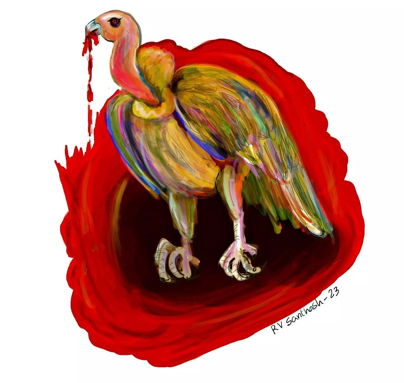 തടിച്ച സ്ത്രീ കണ്ണുകളടച്ച് തല താഴോട്ട് തൂക്കിയിരിക്കുകയാണ്. നനവിന്റെ മുകളിലേക്ക് അവള് സാരി വലിച്ചിട്ടിരുന്നു. ഏതു രാജ്യത്തുനിന്നു വന്ന പക്ഷിയായിരിക്കും അവളുടെ സാരിയില് തൂറിനാറ്റിച്ചത്? അനുവാദമില്ലാതെ അന്യരാജ്യത്തെ മണ്ണില് തൂറാനുള്ള സ്വാതന്ത്ര്യത്തെക്കുറിച്ചും മനുഷ്യനിര്മിതങ്ങളായ അനേകം അതിരുകളെ മായ്ച്ചുകളഞ്ഞ സ്ഥൈര്യത്തെക്കുറിച്ചും പല രാജ്യങ്ങളില്നിന്നായിട്ടു പോലും വംശീയമായി ചിന്തിക്കുകയോ തമ്മില് കൊത്തിച്ചാവുകയോ ചെയ്യാത്ത അവരുടെ ഉള്ളടുക്കത്തെക്കുറിച്ചും മുസഫര് അലി കൗതുകപ്പെട്ടു. ഭൂമിയിലെ മനുഷ്യരെക്കാള് എന്തുകൊണ്ടും ഭാഗ്യം ചെയ്തവര് ആകാശത്തെ പറവകളാെണന്ന് അപ്പോള് അയാള് നിരീക്ഷിക്കുകയും ചെയ്തു.