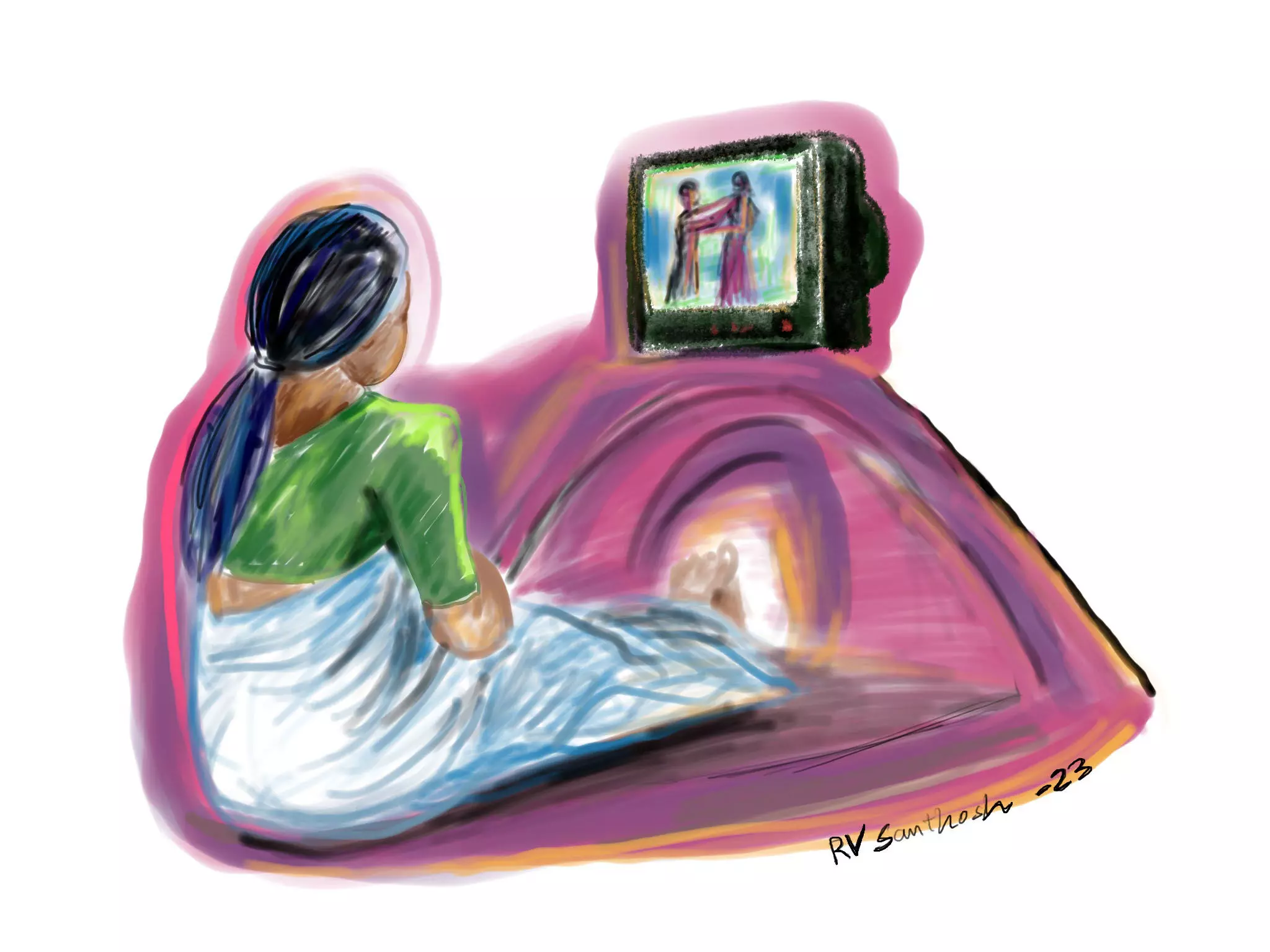 ‘‘പൊല്ലാപ്പോ? ഇങ്ങനെയൊക്കെ പല ബുദ്ധിമുട്ടുകൾ സഹിച്ചെടുക്കുന്നതാ നിങ്ങൾ ടി.വി ഓൺ ചെയ്യുമ്പോൾ കാണുന്നെ. ആട്ടെ, ഹസ്ബൻഡിന്റെ ശല്യം ഇപ്പോഴുമുണ്ടോ?’’